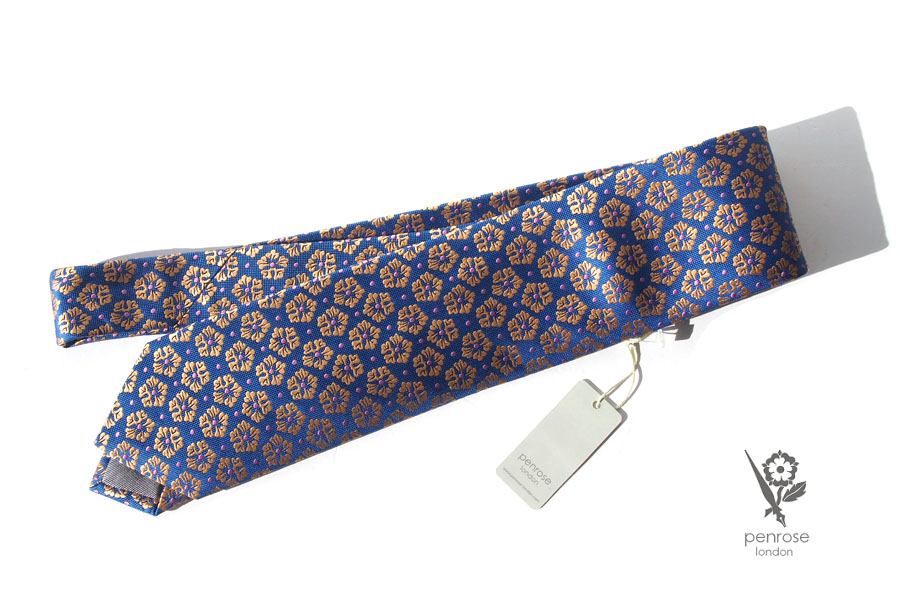 ペンローズ ロンドン|penrose london|フラワー柄シルクネクタイ|ブルー×イエローイメージ01