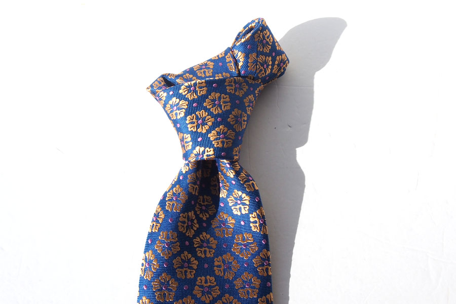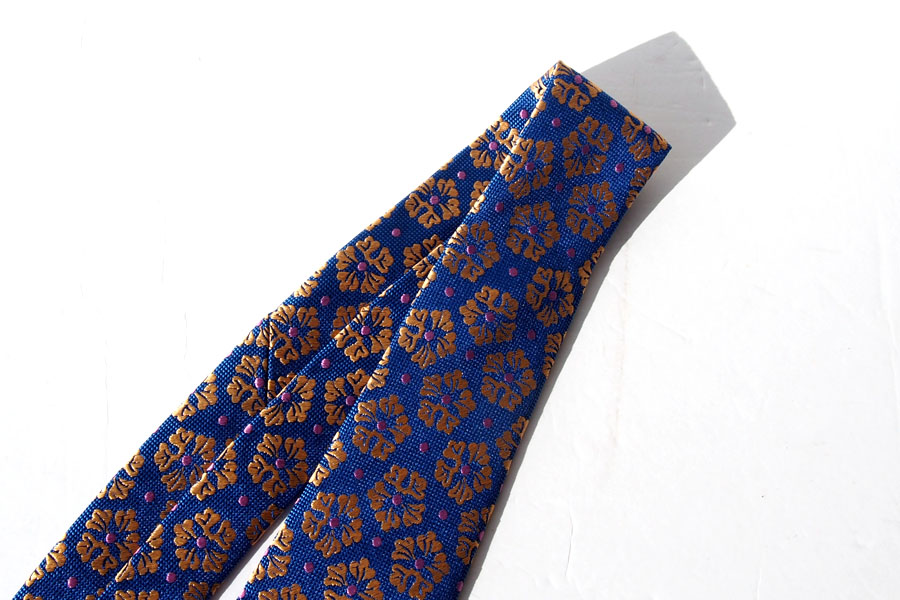 フラワー柄シルクネクタイ|ブルー×イエロー